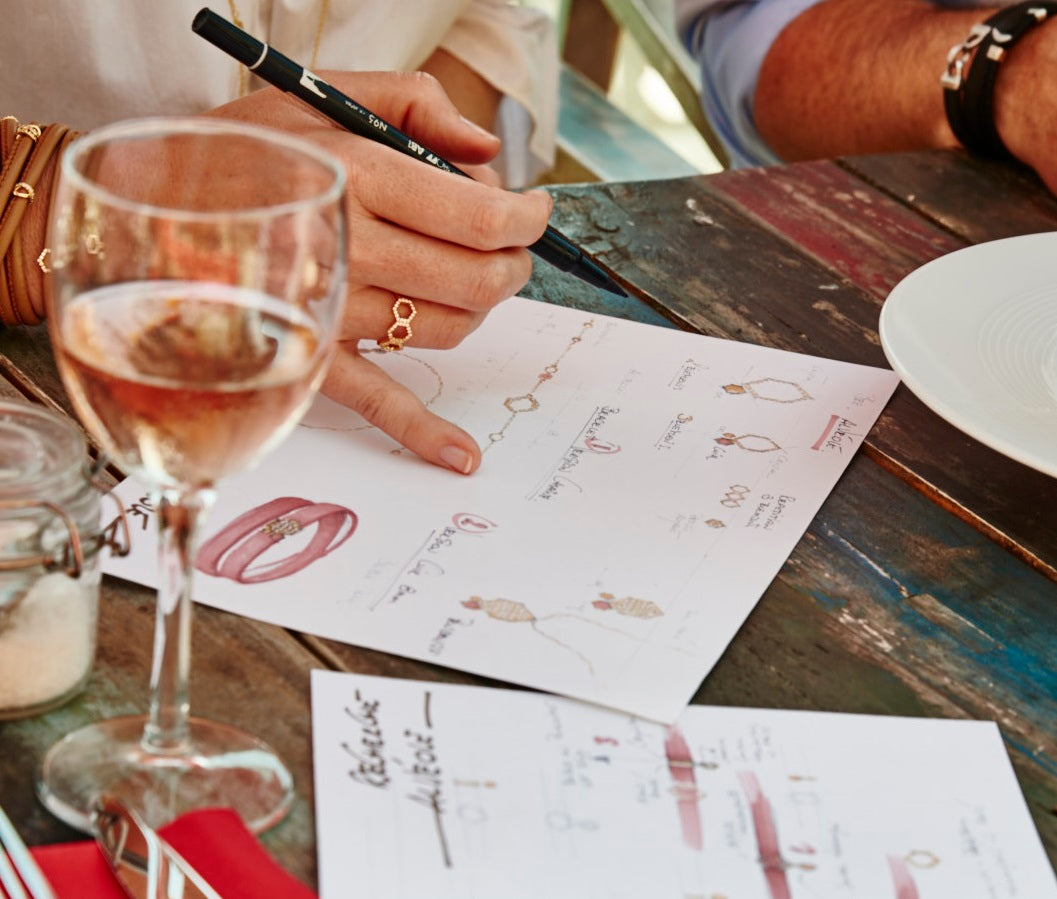 With an education in architecture and interior design, she expanded her expertise by selling stones and jewelry in international markets, allowing her to explore the globe (and finally discover the world by herself !) This journey led to very extensive travelling, reigniting her love for sketching and ultimately inspired her to launch her own exclusive brand.